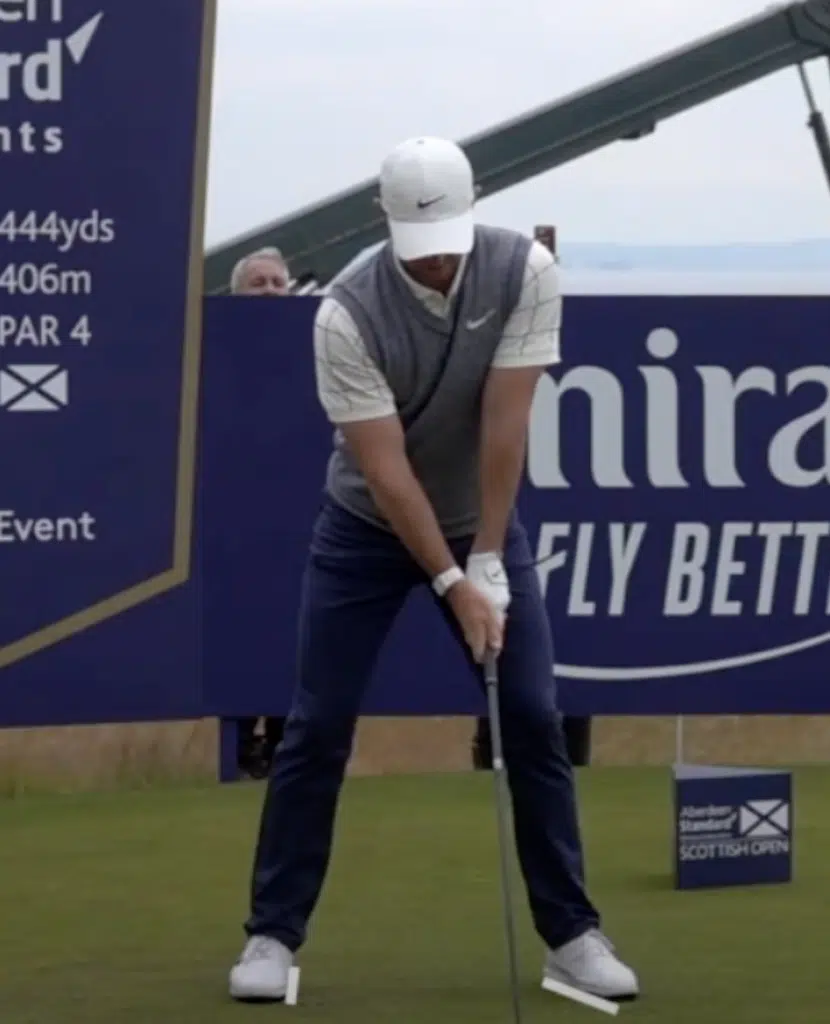 Ein einfacher, aber effektiver Tipp betrifft die Position deiner Füße beim Aufschwung. Viele Amateurgolfer stellen ihre Füße parallel zueinander und direkt nach vorne gerichtet auf. Rory McIlroy und viele andere Profis neigen jedoch dazu, den linken Fuß leicht nach außen zu drehen. Diese kleine Anpassung ermöglicht eine bessere Rotation während des Schwungs und schont gleichzeitig die Knie. Indem du deine Füße leicht nach außen drehst, kannst du nicht nur deine Drehbewegung verbessern, sondern auch langfristig Verletzungen vorbeugen.